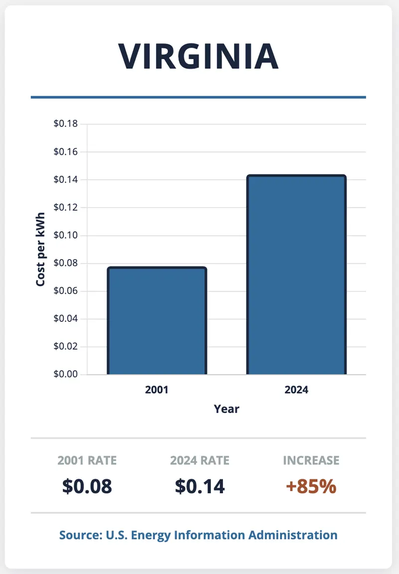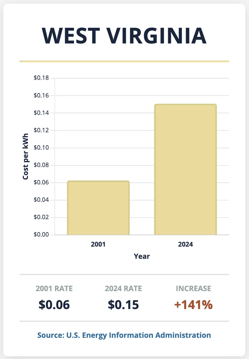 AVERAGE RETAIL ELECTRICITY COSTS: 2001 VS. 2024